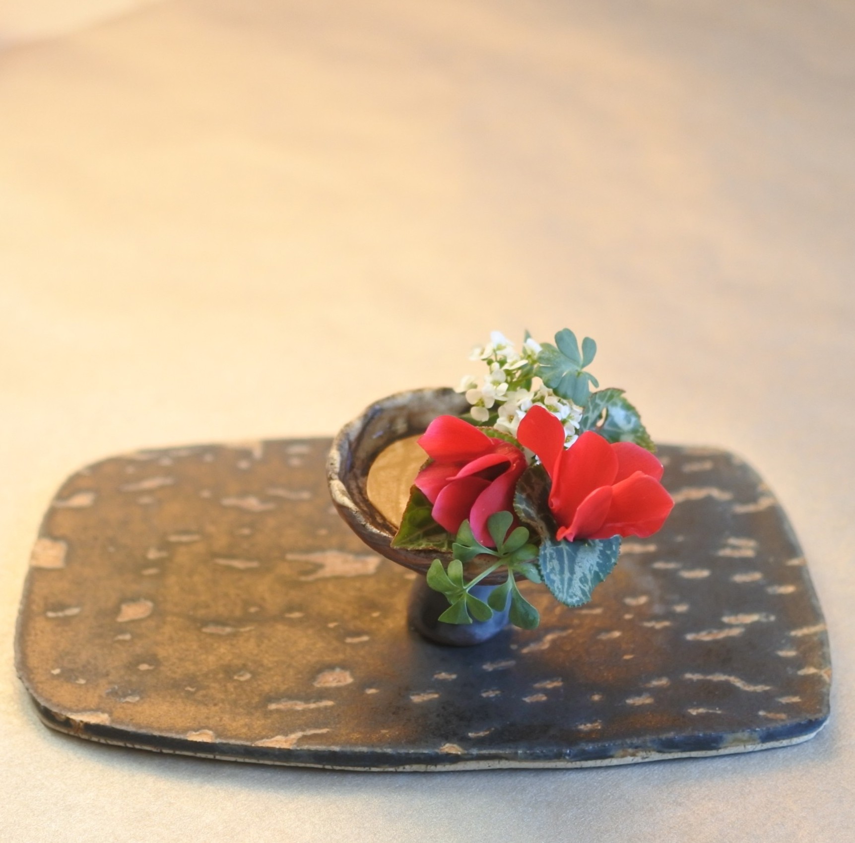 無骨な陶板に赤が映えました