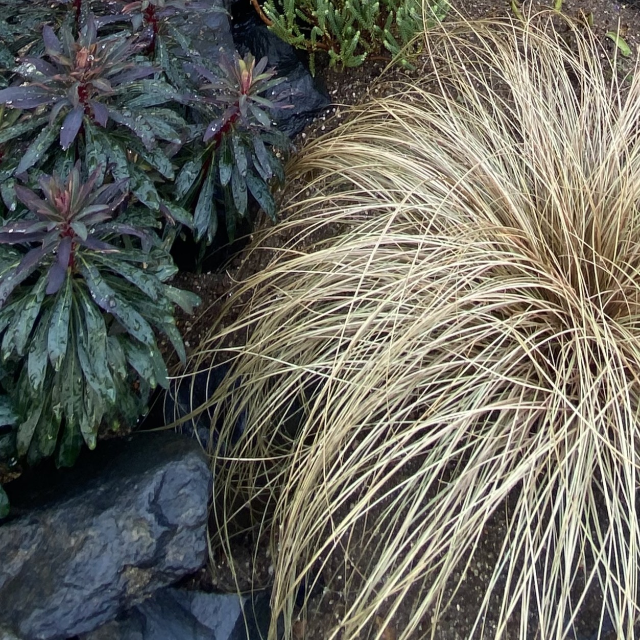 雨にあたりカレックスも艶やかに